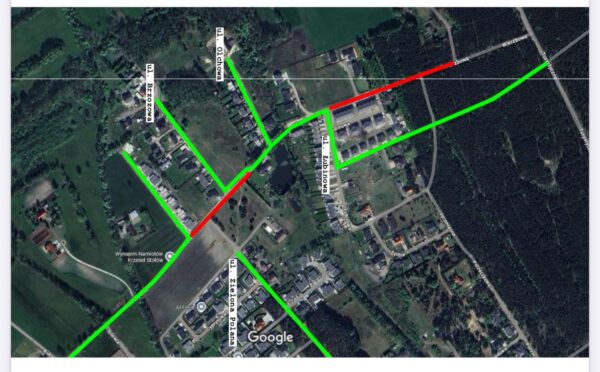„Na zielono zaznaczono odcinki, którymi należy poruszać się w celu dojazdu do posesji. Mieszkańcy ul. Zielona Polana będą mogli poruszać się w kierunku ul. Wesołej poprzez bramę, która zostanie otwarta na czas trwania robót w zakresie skrzyżowania z ul. Wierzbową. Mieszkańcy posesji położonych pod adresem Wierzbowa 93 będą mogli dojechać do posesji od strony ul. Topolowej. Prace na skrzyżowaniu będą prowadzone jedynie w zakresie jego połowy zapewniając stałą możliwość komunikacji. Termin zakończenia robót polegających na wykonaniu warstwy technologicznej kruszywa, po której można się swobodnie poruszać pojazdami, to 17 kwietnia”.