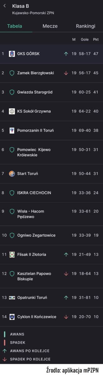 Z powrotu na fotel lidera mogą cieszyć się piłkarze GKSu Górsk. Potknięcie zaliczył Zamek Bierzgłowski. Dobrą formę potwierdza natomiast Sokół Grzywna, który pokonała Wisłę Pedzewo. Walka o awans do A-klasy będzie niezwykle zacięta.
